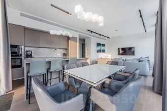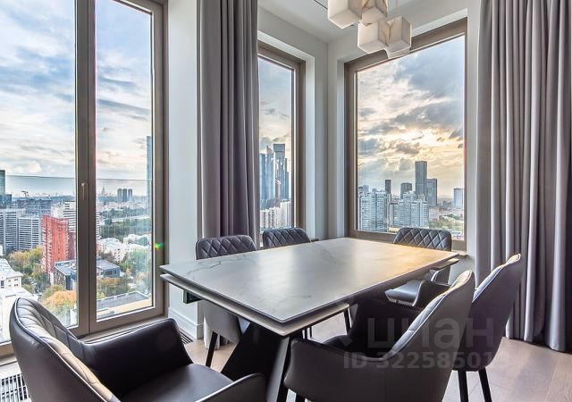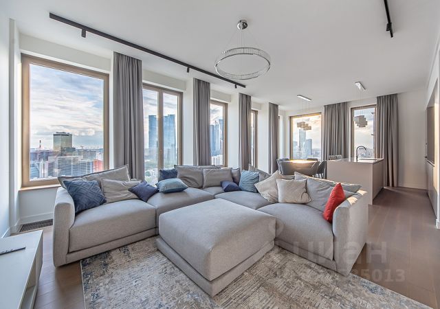 Планировкой предусмотрены: гостиная-кухня-столовая, мастер-блок, вторая спальня с собственным с/у, постирочная и гостевой с/у. Из окон квартиры открываются завораживающие виды на Сити, МГУ, гостиницу Украину, Москва-реку.
