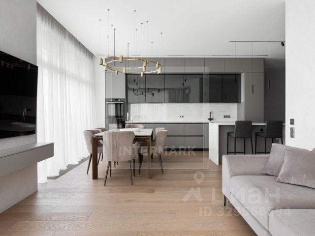 Квартира укомплектована качественной встроенной и корпусной мебелью, изготовленной на заказ пр-во Италия и бытовой техникой ведущих производителей: встроенный кухонный гарнитур (двухкамерный холодильник, духовой шкаф, электрическая варочная панель), обеденная группа; большой мягкий диван в гостиной, встроенные шкафы; все спальные комнаты укомплектованы гарнитурной мебелью и шкафами-купе или гардеробной. Достаточное количество мест хранения для самых требовательных модниц и модников!