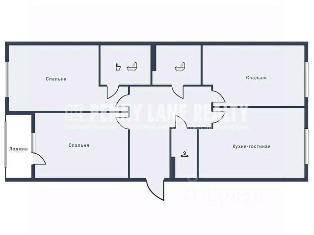 Планировка: большая кухня-гостиная 37м², 2 изолированные комнаты 15м² и 19м², два санузла с ванной/душевой, гардеробная, тёплая лоджия.
