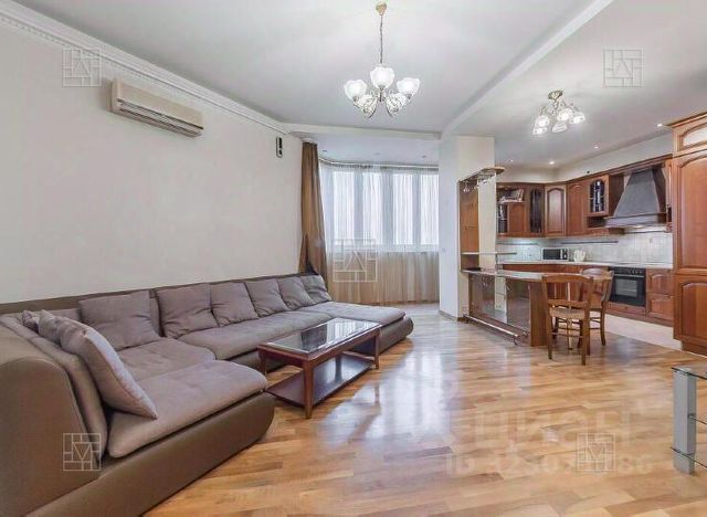 Планировка: кухня-гостиная, объединенная с лоджией, спальня, гардеробная комната, санузел с ванной, санузел с душевой кабиной, постирочная комната.Современный ремонт выполнен из высококачественных материалов в уникальном авторском стиле, с отделкой мрамором и ониксом, мебелью Visioner и Fendi, и бытовой техникой Gaggenau. Из окон открывается открытый живописный вид на парк Трубецких.