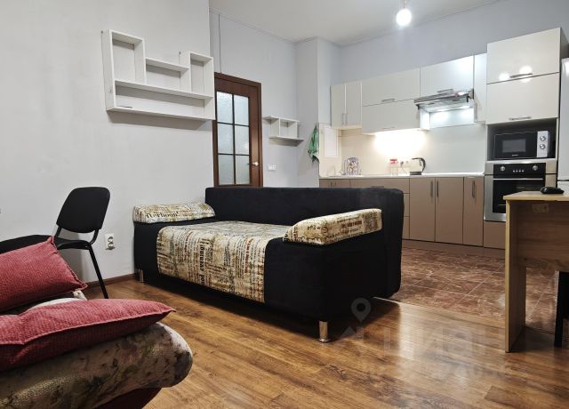 Сдам светлую студию с лоджией на длительный срок. Студия будет комфортна для проживания одного человека. В квартире: шкаф-купе, раскладной диван, кондиционер, обустроенная кухня с варочной панелью, холодильник, в ванной комнате стиральная машина.