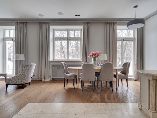 ID 18324. ЭКСКЛЮЗИВ. Стильная, современная семейная 4-х комнатная квартира находится в историческом центре Москвы вблизи Старого и Нового Арбата, рядом со станцией метро "Арбатская", в известном доме с великолепным декором и двумя скульптурами царственных львов. В квартире выполнен капитальный ремонт в современном стиле с использованием натуральных материалов. Квартира полностью технически оснащена всем необходимым оборудованием и бытовой техникой, меблировка квартиры обсуждается. Установлена система "умный дом", система кондиционирования, приточно-вытяжной вентиляции и регуляции отопления, также есть система пароувлажнения, пульты управления светом и шторами в каждой комнате, проведена проводка для аудио- и видеосистемы, есть контроль датчиков протечки. Натуральный паркет, сантехника Villeroy&Boch, есть винный шкаф, посудомоечная машина, высокоскоростной интернет "Акадо", теплые полы в ванных комнатах, черный ход из кабинета во двор дома.. Общая площадь 152 кв. м., функциональная планировка: просторная зона гостиной с кухней и обеденной зоной, три спальни, кабинет, две ванные комнаты, гостевой туалет, гардеробная комната и постирочная. Окна выходят на улицу, потолки 3,70 метров. В подъезде круглосуточная охрана, новый современный лифт. В закрытом, охраняемом дворе есть фиксированное парковочное место. В шаговой доступности находятся театры, музеи, кинотеатры, галереи, Старый Арбат, многочисленные уютные кафе, продуктовые магазины, элитные рестораны, живописные бульвары.