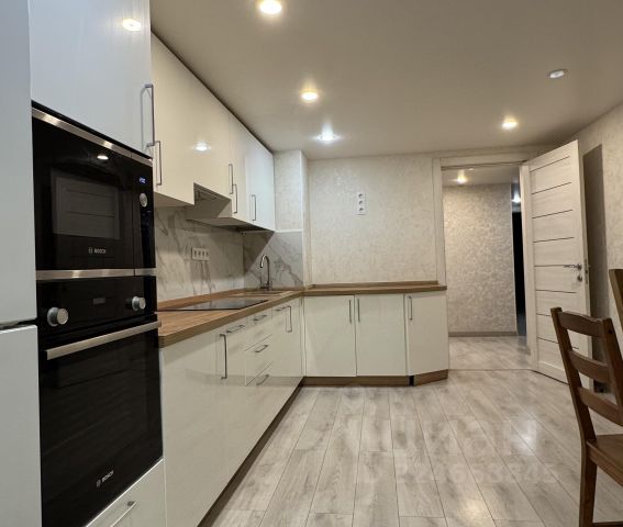 Техника: холодильник GORENJE, двухкамерный высота 2 м., объем 353 литра, бесшумный, микроволновая печь HYUNDAI, электрический чайник с отображением температуры воды WEISSGAUFF, варочная панель KRONA 45 см/3 конфорки, вытяжка MACBI с угольным фильтром.