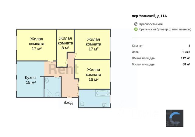 Лот 554860. Бонус коллегам! Предлагается уютная четырехкомнатная квартира в ЖК "Цветной 15". Планировка: кухня, гостиная, три спальни, гардеробная, две ванные комнаты, две лоджии, балкон. Потолки 3,2м. Квартира полностью меблирована и оснащена всем необходимым для комфортного проживания. Охраняемая территория. Машино-место в подземном паркинге входит в стоимость аренды. Развитая инфраструктура района: в шаговой доступности расположены несколько прогулочных зон — скверы Цветного бульвара, Екатерининский сад, театральный комплекс "Сад Эрмитаж", театр им. Дурова, детские сады и школы, кафе и рестораны, салоны красоты, аптеки, банки, а также "Московский цирк Никулина на Цветном Бульваре". Удобная транспортная доступность, в 2 минутах ходьбы станция метро " Цветной бульвар". В квартире: Полностью меблированная, М/место в подземном паркинге, Посудомоечная машина, Стиральная машина, Бойлер, Душевая кабина, Теплые полы, Спутниковое/кабельное телевидение, Кондиционер, Охрана, Интернет, Балкон, Можно с детьми, Можно с животными, Ванна, Интерьер в современном стиле, Гардеробная, Лифт, Мебель в комнатах, Телефон, Телевизор, Мебель на кухне, Окна во двор, PLEASE DO NOT HESITATE TO CONTACT US. Номер объекта: #1/554860/13367 4-комнатная квартира рядом с метро Сухаревская.