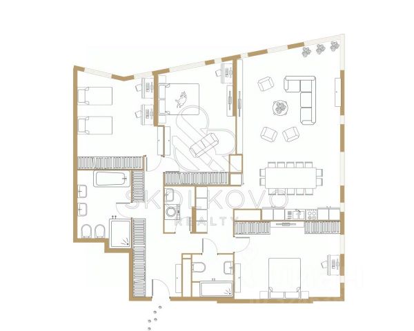 Лот 126912. Светлана Голубцова. В аренду предлагается просторная 4-комнатная квартира в элитном комплексе ЖК "Воробьевы горы". Функциональная планировка: кухня-гостиная, 2 спальни, кабинет, который можно использовать как дополнительную гостевую комнату, просторная гардеробная комната и 2 совмещенных с/у. Общая площадь: 154 кв.м. Ремонт в современном стиле. Квартира меблирована и оснащена всей необходимой бытовой техникой брендов Kuppersbusch и Miele. Панорамный вид из окна. Закрытая и охраняемая территория комплекса под круглосуточном видеонаблюдением. Развитая инфраструктура - в непосредственной близости фитнес-клуб World Class, детский сад, салон красот, химчистка, супермаркет, кафе и рестораны. В пешей доступности - Мосфильмовский пруд и Долина реки Сетунь. Удобная транспортная доступность, быстрый выезд на Кутузовский проспект и ТТК. Можно с детьми и с небольшими животными. Квартира сдается на длительный срок - от 12 месяцев. Без комиссии для арендатора. Бонус партнерам 50%. Есть презентации в pdf на русском или английском для партнеров. 4-комнатная квартира в районе Раменки в Москве.