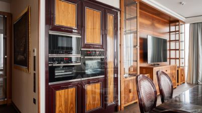 ID 47237. Великолепная 4-комнатная квартира в ЖК "Дом на Мосфильмовской". Квартира полностью укомплектована мебелью и техникой, теплый пол, система кондиционирования, интернет, спутниковое ТВ. В оформлении декора использованы качественные отделочные материалы, мебель и аксессуары ведущих мировых производителей. Общая площадь: 210 кв. м. Планировка: холл, гостиная, совмещенная с кухней и обеденной зоной, 2 спальни со своими гардеробными, кабинет, 2 полноценные ванные комнаты и гостевой туалет, прачечная. Панорамный вид. Машино-место в подземном паркинге входит в стоимость. Закрытая охраняемая территория дома огорожена (вход/въезд через КПП по магнитным картам/пропускам), в подъезде дежурит охрана, служба эксплуатации. Во дворе организована великолепная детская площадка и небольшой стадион. В доме салон красоты, кофейня, химчистка, в подземном гараже автомойка. Рядом итальянский ресторан, гольф-клуб со своим рестораном, кафе, кинотеатр и киностудия "Мосфильм" с экскурсиями и новогодними елками.. Отличная транспортная развязка. В пределах 15 мин. удобный выезд на Сколковское, Минское, Рублевское и Новорижское шоссе. В просторных лобби предусмотрена зона отдыха, консьерж-сервис, своя управляющая компания. ЖК "Дом на Мосфильмовской" расположен в одном из самых экологически чистых районов Москвы. Please feel free to contact Intermark Real Estate to get detailed information or to set up a viewing! 24/7 help desk service with English-speaking operators В квартире: С мебелью, Посудомоечная машина, Сушильная машина, Бойлер, Теплые полы, Сигнализация, Интернет, Можно с детьми, Консьерж, Кондиционер, Кухонная мебель, Окна на улицу, Окна во двор Снять 4-комнатную квартиру в округе ЗАО в Москве на длительный срок.