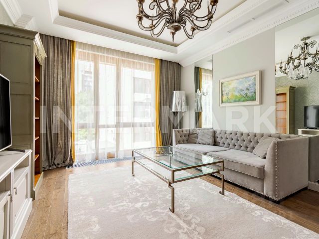 Аренда от собственника квартиры площадью 143 кв.м на 3-м этаже элитного жилого дома с подземным паркингом и собственной охраняемой территорией. Аренда строго без животных и детей. В квартире просторная кухня-гостиная со столовой зоной, три спальни и три санузла. Выполнен дизайнерский ремонт в стиле современной классики. В отделке использованы натуральный камень, ценные породы дерева, мрамор Crema Marfil, наборный паркет выбеленный дуб. Мебель и освещение ведущих европейских производителей: Maries Corner, Veranda, Eicholtz, Lolaglamour, Andrew Martin, Mis En Demeure, Patrizia, Garganti, Guadarte, Zonca, Vaughan designs. Сантехника V&B, Teuco, Gamadecor, Jacuzzi Hexis, MargoroliGeberit, Hansgrohe. Панорамные виды на живописную парковую зону. В доме предусмотрена развитая инфраструктура: детские площадки, фитнес-центр, бассейн, сауна, салон красоты. В распоряжении жителей индивидуальный выход в Суворовский парк с великолепной прогулочной зоной и прудом. Коммунальные и эксплуатационные платежи оплачивает арендатор дополнительно. Аренда 1 машиноместа дополнительно 20000 руб./месяц. Сдается 4-комнатная квартира на улице Звенигородская в Москве.
