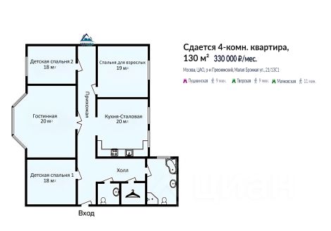 ID 33269. Современная 4-х комнатная квартира в доме 2004 года с подземной парковкой на Патриарших Прудах. В квартире современный ремонт с использованием только качественных материалов. Полная комплектация бытовой техникой и сантехникой престижных марок. Предлагается без мебели. Установлен бойлер, кондиционер, стиральная машина, проведен интернет и охранная сигнализация, много мест для хранения вещей. Виды на 3 стороны, три больших балкона. Функциональная планировка: общая площадь 180 кв.м., гостиная, полностью оборудованная кухня-столовая, 3 спальни, 3 гардеробные комнаты, 2 ванные комнаты и гостевой туалет. Подземная парковка включена в стоимость. В наличии гостевая наземная парковка в огороженном дворе дома. В ближайшем доступе множество кафе, ресторанов, музеев и различных памятников архитектуры. Можно с детьми. Можно с животными. Please feel free to contact Intermark Real Estate to get detailed information or to set up a viewing! 24/7 help desk service with English-speaking operators В квартире: М/место в подземном паркинге, Парковка, Посудомоечная машина, Стиральная машина, Бойлер, Джакузи, Душевая кабина, Кондиционер, Видеонаблюдение, Интернет, Без мебели, Балкон, Можно с детьми, Можно с животными, Изолированная кухня, Ванна, Интерьер в современном стиле, Кондиционер, Гардеробная комната, Лифт, Окна на улицу, Окна во двор Сдаю 4-комнатную квартиру с детьми на улице Малая Бронная в Москве.