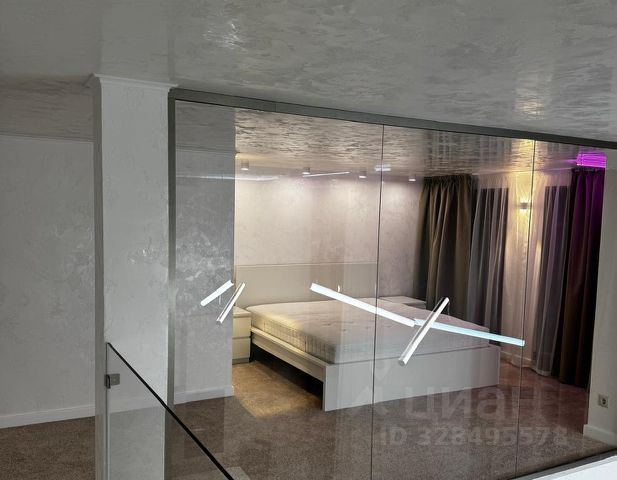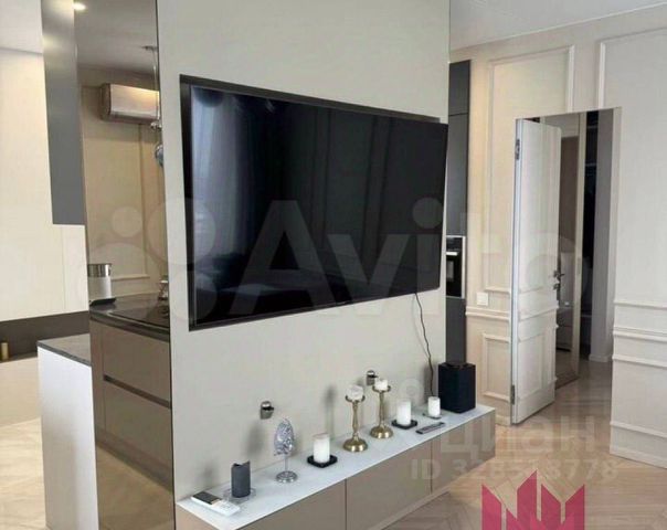 Мебель: шкаф-купе на заказ Техника: в шкафу встроено оборудование управления умным домом, акустическая система (ресивер Onkyo, усилитель для сабвуфера Monitor Audio, проигрыватель Blu-Ray Pioneer).