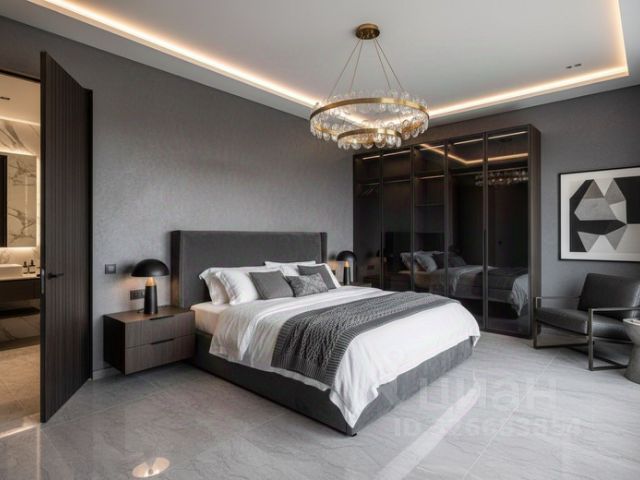 Спальня 3 - гардеробная с системой хранения, кровать King Koil (премиум класс) с мягким изголовьем, прикроватные тумбочки, пуфик с зеркалом оформленные под туалетный столик, телевизор Hartens, шторы велюр. Лоджия оборудована системой хранения горнолыжного оборудования.