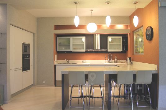5.Полноценная кухня с большой рабочей зоной из кварца, множеством мест хранения и оборудования: 2 холодильника, посудомойка 60см, измельчитель бытовых отходов, фильтра для очистки питьевой воды, вся техника премиальных европейских брендов.
