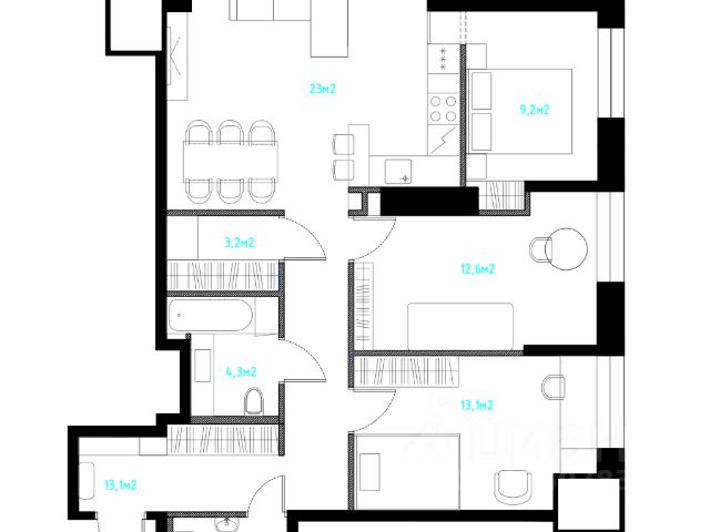 • ✓ В базе Циан 2 4-комнатных квартир с детьми станция Новохохловская (МЦК)