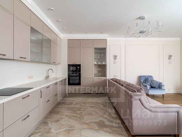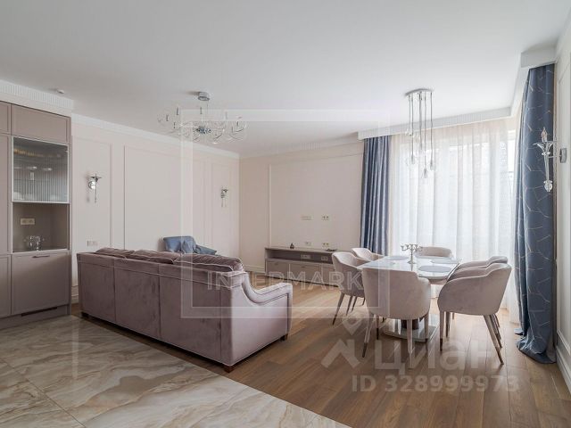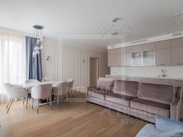 ID 29718. Четырёхкомнатная квартира 142 кв.м с современным ремонтом в клубном доме "Новопесковский" на 1-м Смоленском переулке. Квартира расположена на 9 этаже, потолки — 3,2 м, панорамные окна выходят на улицу и во двор. Просторная кухня-гостиная площадью 62 кв.м объединена с жилой зоной, предусмотрены три изолированные спальни, две ванные комнаты с душевыми кабинами, две гардеробные, холл. Квартира полностью меблирована, укомплектована всей необходимой бытовой техникой, включая стиральную и посудомоечную машины, систему кондиционирования, высокоскоростной интернет, тёплые полы, ТВ. Дом "Новопесковский" — современный клубный дом с закрытой охраняемой территорией, круглосуточной охраной, консьержем, видеонаблюдением и подземным паркингом. Предусмотрено машиноместо. Установлены скоростные бесшумные лифты, благоустроенный вестибюль в европейском стиле. На территории — детская площадка, наземная гостевая парковка. Локация отличается высоким уровнем инфраструктуры: в пешей доступности — фитнес-клубы, супермаркеты, рестораны, кафе, салоны красоты, театры, галереи, музеи, набережная Москвы-реки. Рядом — школы и детские сады. Возможно проживание с детьми школьного возраста. Животные не допускаются. По данному объекту предусмотрено гарантированное вознаграждение профессиональным агентствам и частным брокерам.