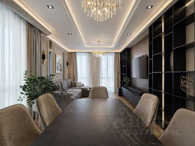 6.Оборудованная гостиная для просмотра всей семьей фильмов и телепередач: огромный телевизор 86 дюймов 4K 120Hz, кабельная аудиоподготовка, шторы димаут c электроприводом, большой и очень удобный диван.