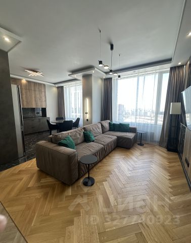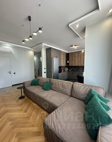 Планировка: большая кухня-гостиная 37м², 2 изолированные комнаты 15м² и 19м², два санузла с ванной/душевой, гардеробная, тёплая лоджия.