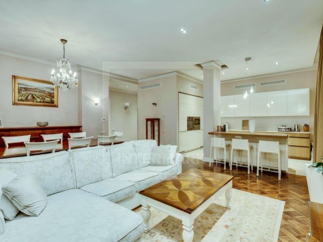 ID 35162: Предлагается четырехкомнатная квартира в престижном жилом комплексе "Садовые Кварталы" в историческом районе Хамовники. Это эксклюзивное предложение порадует любителей комфорта и стиля. Квартира располагается на четвертом этаже, обладает общей площадью 180 квадратных метров и окнами, выходящими сразу на три стороны света, обеспечивая великолепную инсоляцию пространства в течение всего дня. Пространство квартиры грамотно спланировано и включает просторную гостиную, функциональную кухню, две уютные спальни, удобную рабочую зону-кабинет, который легко превращается в дополнительную гостевую комнату, две полноценные ванные комнаты и отдельный гостевой санузел. Каждый уголок продуман до мелочей и оборудован современной премиум-класс мебели и техники. Особое внимание уделено деталям отделки: использованы исключительно качественные натуральные материалы, подчеркивающие атмосферу домашнего тепла и уюта. Высокие потолки, большие панорамные окна открывают вид на внутренние территории комплекса с зелеными зонами отдыха и тихими прогулочными аллеями. Для владельцев предусмотрено одно удобное машиноместо в охраняемом подземном паркинге, исключающем необходимость беспокоиться о парковке автомобиля возле дома. Комплекс представляет собой уникальный пример городской среды нового поколения: территория освобождена от автомобильного движения благодаря грамотному проектированию подземных проездов. Жителей ждут ухоженные зеленые зоны с декоративным водоемом, тенистыми деревьями и благоухающими клумбами. В непосредственной близости расположены любимые места москвичей: бары, гастрономические заведения, культурные учреждения, фитнес-клубы и образовательные площадки для детей всех возрастов. Отличная транспортная доступность района позволяет быстро добраться до любой точки города. "Садовые кварталы" — идеальный выбор для тех, кто ценит комфорт, качество и красоту своего жилища.