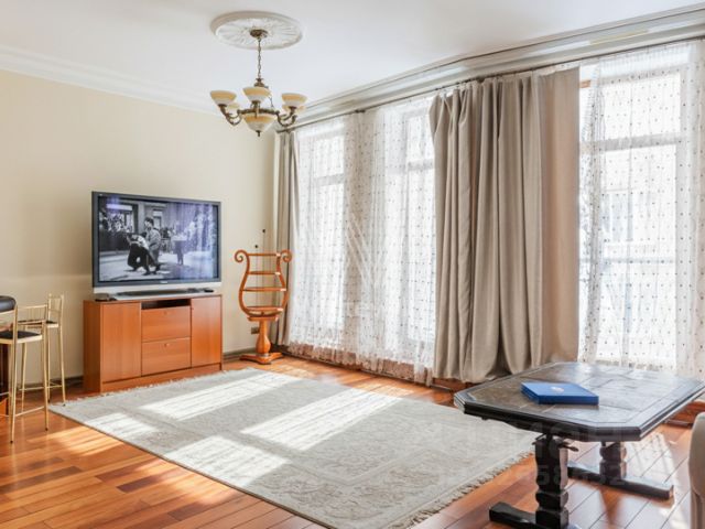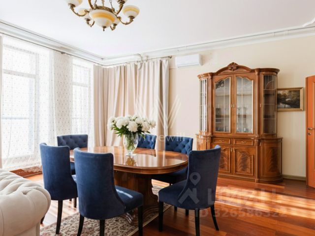 ID 11449: Сдаётся в аренду на длительный срок стильная 4?комнатная квартира общей площадью 120 кв. м в знаменитом сталинском доме на Новинском бульваре — в престижном районе с развитой инфраструктурой, рядом с Новым Арбатом. Квартира полностью меблирована: в ней установлена дорогая дизайнерская мебель в классическом стиле. Планировка включает отдельную кухню со встроенной бытовой техникой премиальных производителей (в том числе новый духовой шкаф и газовая плита), гостиную, переходящую в столовую зону, две спальни, комнату свободного назначения (которую можно использовать как кабинет, столовую или детскую) и холл. Также в квартире оборудованы полноценная ванная комната и гостевой туалет с современной техникой. Интерьер выполнен с дорогим дизайнерским ремонтом в классическом стиле, на полу — паркет и плитка, предусмотрен обогрев полов. Среди удобств — два кондиционера, высокоскоростной интернет, спутниковое телевидение (установлены три телевизора: на кухне, в спальне и в гостиной), а также фильтр для очистки питьевой воды. Безопасность и комфорт жильцов обеспечены бронированной дверью, домофоном и сигнализацией в квартире, круглосуточной профессиональной охраной подъезда и видеонаблюдением на прилегающей территории. В подъезде выполнен новый ремонт и установлены два новых лифта, а окна квартиры выходят в тихий зелёный двор с детской площадкой — благодаря отличной шумоизоляции здесь можно спокойно спать с открытыми окнами. Для автовладельцев предусмотрена парковка на закрытом охраняемом дворе дома. Район отличается развитой инфраструктурой: поблизости расположены Литературный музей, Театр Вахтангова, Дом правительства, школы, детские сады, рестораны, бары, кафе, салоны красоты и магазины интерьера. Транспортная доступность также на высоком уровне: от дома легко выехать на Кутузовский проспект, Новый Арбат и Садовое кольцо, а станции метро "Краснопресненская", "Баррикадная" и "Смоленская" находятся в пешей доступности. Идеальный вариант для тех, кто ценит комфорт, безопасность и престижное расположение. Please feel free to contact Intermark Real Estate to get detailed information or to set up a viewing! 24/7 help desk service with English-speaking operators В квартире: С мебелью, Парковка, Посудомоечная машина, Стиральная машина, Сушильная машина, Бойлер, Теплые полы, Спутниковое/кабельное телевидение, Кондиционер, Охрана, Интернет, Можно с детьми, Кухонная мебель, Окна на улицу, Окна во двор 4-комнатная квартира с евроремонтом на бульваре Новинский в Москве.