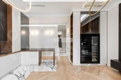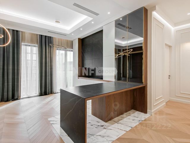 ID 46664: Стильная 3-комнатная квартира с дизайнерским ремонтом в элитном жилом комплексе на Садовой-Кудринской, 23С4. Общая площадь — 75 кв.м, кухня-гостиная — просторная, высота потолков — стандартная, квартира расположена на 4 этаже. Интерьер выполнен в современном стиле с использованием качественных материалов, предусмотрен подогрев полов в ванных зонах. Квартира полностью меблирована и укомплектована всей необходимой техникой: посудомоечная и стиральная машины, холодильник, вытяжка, кондиционеры, бойлер, телевизор, интернет. Планировка включает кухню-гостиную с обеденной зоной и камином, уютную спальню, функциональную комнату, которую можно использовать как кабинет, совмещённую ванную комнату с душевой кабиной, отдельный гостевой туалет и вместительную гардеробную. Окна выходят как на улицу, так и во двор, обеспечивая хорошее естественное освещение и тихую атмосферу. Дом расположен на охраняемой территории с консьержем, видеонаблюдением и наземной парковкой для жильцов. Во дворе — детская и спортивная площадки. Район отличается высоким уровнем инфраструктуры: рядом современные фитнес-центры, престижные школы и детские сады, супермаркеты, рестораны и кафе. Возможно проживание с детьми. Условия по животным обсуждаются индивидуально.