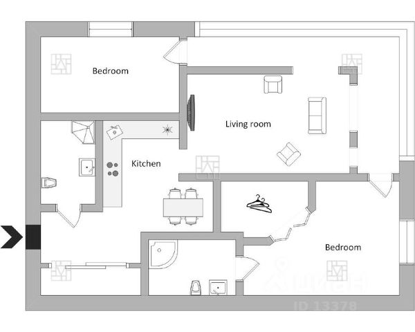 Для комфортного проживания в квартире есть посуда, набор кастрюль и сковородок, столовые принадлежности, гладильная доска, утюг, сушилка для белья, пылесос, фен, утюг.