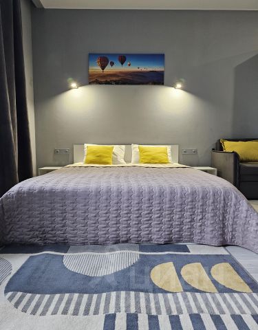 Благоустроенная закрытая охраняемая территория (охрана и видеонаблюдение). Есть подземный паркинг, кладовые помещения. Вся территория жилого района Alia озеленена, без машин. Рядом Центральный парк с детской площадкой и фонтаном.