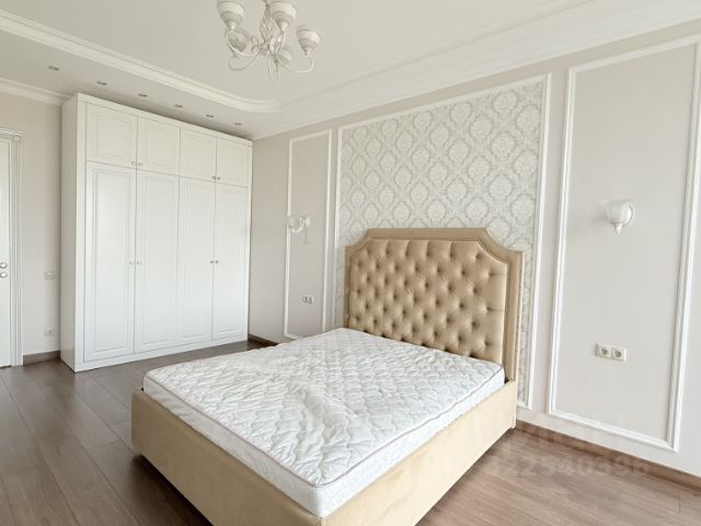 В спальне - большая кровать с ортопедическим матрасом, вместительная гардеробная , тёплый текстиль. Панорамные окна легко закрываются шторами-блэкаут на электро карнизе с пультом управления , и комната превращается в место глубокого отдыха.