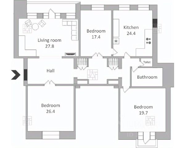 От года, комм. платежи включены (без счётчиков), без комиссии, залог 770 000 ₽