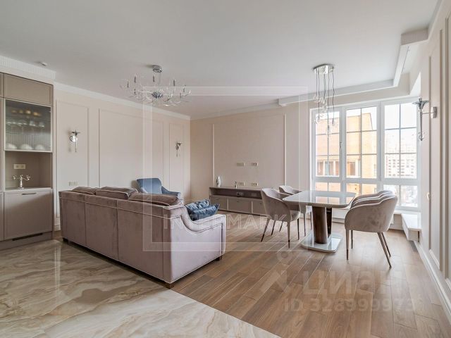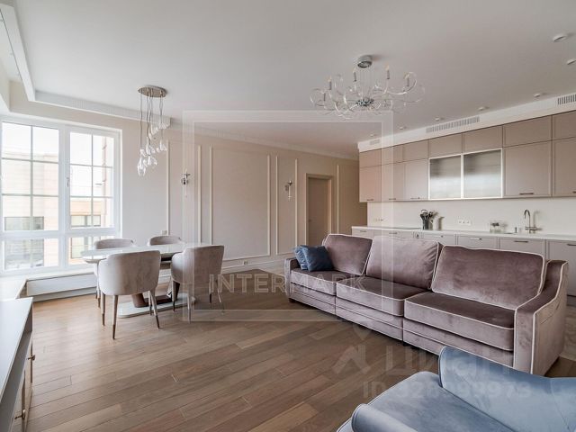 ID 29718. Предлагается прекрасная современная 4-х комнатная квартира в одном из самых стильных и статусных жилых комплексов Москвы, дом премиум класса — ЖК "Новопесковский" в 1-ом Смоленском переулке вблизи станции метро "Смоленская". Выполнен новый высококачественный ремонт в современном стиле с использованием натуральных материалов. Квартира предлагается полностью меблированной и оснащенной всей необходимой бытовой техникой от современных производителей. Установлена система кондиционирования, климат-контроль, стиральная и посудомоечная машина, высокоскоростной интернет, теплые полы, панорамные окна, встроенные шкафы. Общая площадь 142 кв. м, функциональная планировка: просторная кухня с гостиной, 3 изолированные спальни, две гардеробные комнаты, две ванные комнаты с душевыми кабинами, холл. Дом с многоуровневой, круглосуточной охраной, подземной парковкой. Красивый европейский вестибюль дома, современные скоростные и бесшумные лифты, камеры видеонаблюдения. Благоустроенная огороженная территория дома, въезд строго по пропускам. Во дворе есть детская площадка. Также имеется наземная гостевая охраняемая парковка. Удобное транспортное сообщение, пешая доступность до метро. Развитая инфраструктура района, в шаговой доступности: многочисленные уютные кафе, продуктовые магазины, элитные рестораны, салоны красоты, музеи, театры и галереи, фитнес-клубы, набережная Москвы-реки. Можно с детьми школьного возраста. Строго без животных.