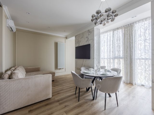 Красивая и светлая четырёхкомнатная квартира с джакузи, Smart TV, двумя балконами и видом на Кутузовский и Москва-Сити. Одна из самых популярных квартир просторная, но при этом очень уютная.