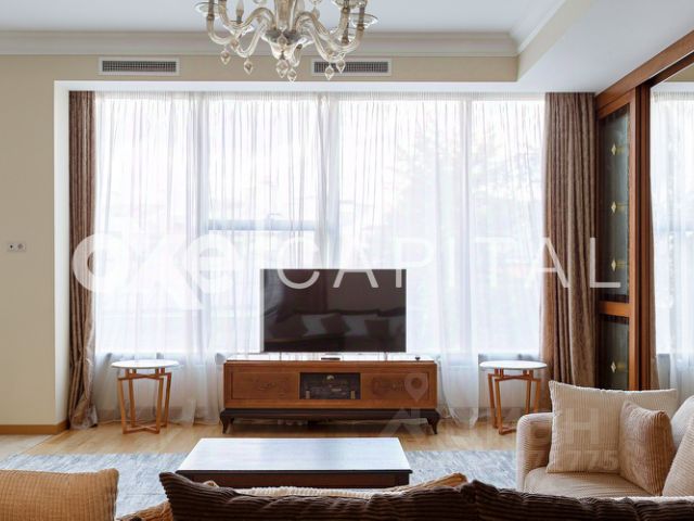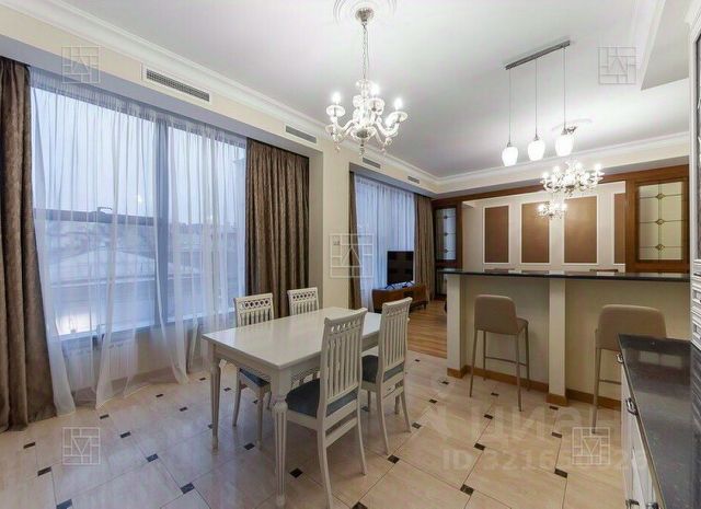 ID 39150. Элегантная 5-комнатная квартира в премиальном ЖК "Еропкинский 16". Дизайнерский ремонт выполнен с использованием качественных материалов, высокие потолки и панорамные окна в тихие переулки. Квартира меблирована и полностью оборудована, приточно-вытяжная система вентиляции и кондиционирование. Возможна дополнительная меблировка по желанию клиентов. Общая площадь: 200 кв. м. Планировка: кухня-гостиная в едином открытом пространстве, 3 полноценные спальни + гостевая спальня/для горничной без окна, кабинет, 3 ванные комнаты (ванна, душ), гардеробная, постирочная. Одно машино-место в подземном гараже включено в стоимость. Жилой комплекс с огороженной охраняемой территорией, великолепной входной группой и высоким уровнем сервиса. Удобное расположение и транспортная доступность. Рядом находятся рестораны, лучшие учебные заведения, музеи, галереи и парки. Можно с детьми. Please feel free to contact Intermark Real Estate to get detailed information or to set up a viewing! 24/7 help desk service with English-speaking operators В квартире: С мебелью, М/место в подземном паркинге, Парковка, Посудомоечная машина, Стиральная машина, Сушильная машина, Теплые полы, Кондиционер, Охрана, Интернет, Можно с детьми, Европланировка, Интерьер в современном стиле, Консьерж, Гардеробная комната, Кухонная мебель, Окна на улицу, Окна во двор 5-комнатная квартира в переулке Еропкинский в Москве.