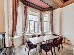 Просторная квартира площадью 208 м² в премиальном доме "Филипповский" на 7-м этаже. В квартире представлены: две изолированные комнаты, столовая, гостиная. Две ванных комнаты. Спланирована угловая гостиная-столовая, кухня, изолированная раздвижными дверьми, 2 мастер-спальни с гардеробной комнатой, гостевой санузел (постирочная), холл. Квартира полностью меблирована и оборудована бытовой техникой от ведущих мировых производителей. Из окон открываются виды на улицу и в тихий двор. В наличии есть 2 машиноместа за отдельную плату.