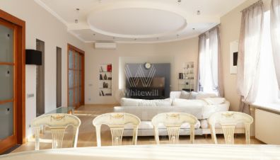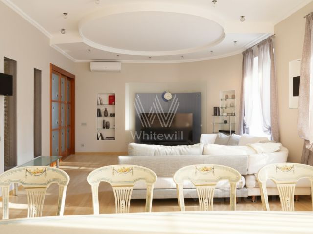 ID 19712. Уютная современная двухуровневая квартира с качественным ремонтом и мебелью в тихом дворе на Патриарших прудах. Расположена в историческом малоквартирном здании после капитального ремонта. Удобная транспортная доступность, как на метро, так и на автомобиле. ЗАКРЕПЛЕННОЕ парковочное место во дворе здания. Планировочное решение квартиры включает: две гостиных комнаты, столовую с кухней открытой планировки, три спальни и два полных санузла. На первом уровне расположены - просторная гостиная, переходящая в столовую с кухонной зоной, две спальни, гардеробная комната, постирочная и ванная комната с душевой кабиной. Второй уровень включает еще одну гостиную, основную спальню с просторной гардеробной и своим санузлом. Квартира оснащена всей бытовой техникой: стиральная, сушильная и посудомоечная машины, кондиционеры, холодильник, винный шкаф, бойлер, а также вся кухонная техника известных европейских марок. Приятным бонусом для Вас будет электрическая сауна. Все зоны с плиткой имеют электрический подогрев. В квартире выполнен качественный ремонт с применением дорогих материалов. Установлена стильная дизайнерская мебель европейских производителей. Район Патриарших прудов не нуждается в представлении, он знаменит на всю страну. В пешей доступности Вы найдете рестораны или кафе на любой вкус и настроение. С детьми можно выйти на прогулку в сквер Патриаршего пруда, а зимой можно всей семьей посетить каток. Семьи с детьми приветствуются. В районе выбор топовых школ и детских садов для Ваших детей. Please feel free to contact Intermark Real Estate to get detailed information or to set up a viewing! 24/7 help desk service with English-speaking operators В квартире: С мебелью, Парковка, Посудомоечная машина, Стиральная машина, Сушильная машина, Бойлер, Душевая кабина, Теплые полы, Сауна, Спутниковое/кабельное телевидение, Кондиционер, Пожарный выход, Интернет, Пентхаус, Можно с детьми, Европланировка, Ванна, Интерьер в современном стиле, Гардеробная комната, Лифт, Кухонная мебель, Окна на улицу, Окна во двор Снять 5-комнатную квартиру рядом с метро Баррикадная на длительный срок.