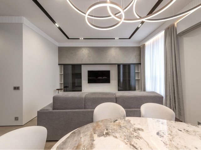 Выполнен качественный ремонт с использованием премиальных материалов. Дизайнерская мебель. Напольное покрытие - практичный кварц-винил. Установлено два кондиционера. Множество сценариев освещения.