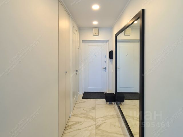 Мебель: шкаф-купе на заказ Техника: в шкафу встроено оборудование управления умным домом, акустическая система (ресивер Onkyo, усилитель для сабвуфера Monitor Audio, проигрыватель Blu-Ray Pioneer).