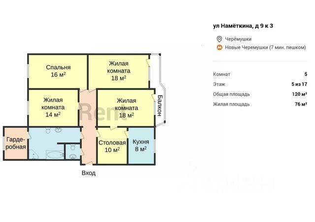 Светлая многокомнатная квартира в 7-8 минутах от метро "Новые Черемушки". Комнаты частично обставлены комфортабельной мебелью. Две из четырех спален имеют выход на остекленный балкон, есть столовая, сообщающаяся с кухней. Кухня укомплектован полным набором техники, включая посудомоечную машину и духовую печь. Обустроена ванная комната с проходом в гардеробную с окном, есть гостевой санузел. Во дворе - детская площадка. У дома - магазины, супермаркеты, кафе, фитнес, школы, детсады, спорткомплекс. Недалеко - ТЦ "Панорама", "Черемушки", поликлиника, парки 70-летия Победы и Воронцовский - для прогулок. Удобный выезд на Профсоюзную улицу. - Страховой депозит можно оплатить 2-мя частями. - Квартиру представляет агент - Александр. - ID объекта 129108. Снять 5-комнатную квартиру с детьми на улице Наметкина в Москве.