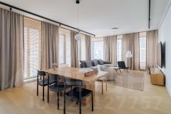 ID 19712: Уютная современная двухуровневая квартира с качественным ремонтом и мебелью в тихом дворе на Патриарших прудах. Расположена в историческом малоквартирном здании после капитального ремонта. Удобная транспортная доступность, как на метро, так и на автомобиле. ЗАКРЕПЛЕННОЕ парковочное место во дворе здания. Планировочное решение квартиры включает: две гостиных комнаты, столовую с кухней открытой планировки, три спальни и два полных санузла. На первом уровне расположены - просторная гостиная, переходящая в столовую с кухонной зоной, две спальни, гардеробная комната, постирочная и ванная комната с душевой кабиной. Второй уровень включает еще одну гостиную, основную спальню с просторной гардеробной и своим санузлом. Квартира оснащена всей бытовой техникой: стиральная, сушильная и посудомоечная машины, кондиционеры, холодильник, винный шкаф, бойлер, а также вся кухонная техника известных европейских марок. Приятным бонусом для Вас будет электрическая сауна. Все зоны с плиткой имеют электрический подогрев. В квартире выполнен качественный ремонт с применением дорогих материалов. Установлена стильная дизайнерская мебель европейских производителей. Район Патриарших прудов не нуждается в представлении, он знаменит на всю страну. В пешей доступности Вы найдете рестораны или кафе на любой вкус и настроение. С детьми можно выйти на прогулку в сквер Патриаршего пруда, а зимой можно всей семьей посетить каток. Семьи с детьми приветствуются. В районе выбор топовых школ и детских садов для Ваших детей. Please feel free to contact Intermark Real Estate to get detailed information or to set up a viewing! 24/7 help desk service with English-speaking operators В квартире: С мебелью, Парковка, Посудомоечная машина, Стиральная машина, Сушильная машина, Бойлер, Душевая кабина, Теплые полы, Сауна, Спутниковое/кабельное телевидение, Кондиционер, Пожарный выход, Интернет, Пентхаус, Можно с детьми, Европланировка, Ванна, Интерьер в современном стиле, Гардеробная комната, Лифт, Кухонная мебель, Окна на улицу, Окна во двор Сдается 5-комнатная квартира с евроремонтом в Москве.