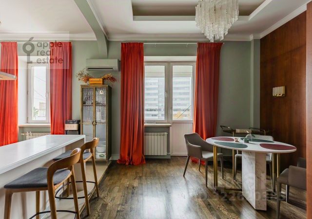 ID 46069: Двухэтажные апартаменты с камином и террасой в ЖК Art Residence, 3-я ул. Ямского Поля, д. 9. Арт-проект клубного типа класса ЛЮКС. Авторский дизайн - сочетание классического интерьера с современной функциональностью, городской стиль с атмосферой загородной жизни. Спальный гарнитур из массива дерева, дорогая мягкая мебель, уникальные светильники, малахитовая мебель для санузлов, элементы декора все привезено на заказ из-за рубежа и имеет высокий уровень качества и состояния. Центр притяжения это действующий дровяной камин и собственная благоустроенная терраса (35 кв. м ). Общая площадь 135 кв. м. На 1-м уровне: гардеробная со встроенной системой сушки вещей, гостевой санузел со стиральной машиной, объединенное пространство кухни и гостиной с выходом на открытую террасу. На 2-м уровне расположена спальня, гардеробная с регулировкой высоты полок, душевая комната. Панорамное остекление, высокие потолки (6м), лестница с резными балясинами подчеркивают воздушность пространства и обеспечивают его естественным светом. В квартире поддерживается комфортный температурный режим Презентабельная входная группа дома с центральной рецепцией, услугой консьерж-сервиса, холлом с зоной ожидания и офисом УК. На крыше 2-ярусной парковки благоустроен и озеленен дворик со скамейками и качелями. Аренда м/м за дополнительную плату. В комплексе имеется разнообразная инфраструктура: от кафе и ресторанов, "ВкусВилл"-супермаркета и барбершопа до студии танцев, галереи современного искусства и продюсерской студии для молодых музыкантов.