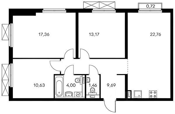 От года, комм. платежи включены (счётчики включены), без комиссии, залог 350 000 ₽