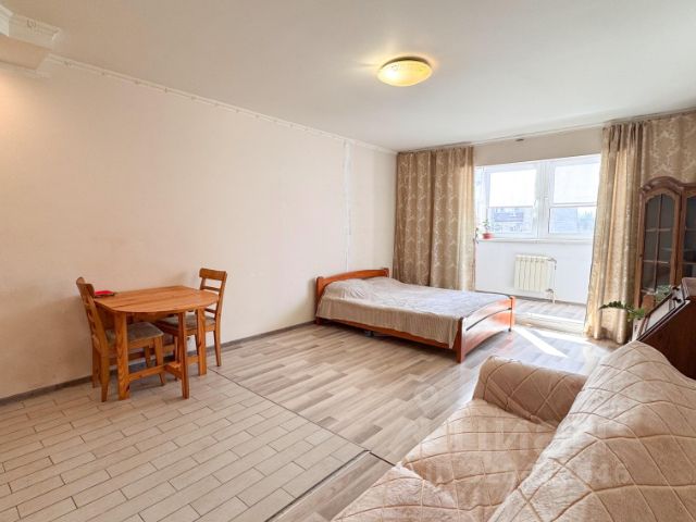 Светлая, чистая студия. Сдается впервые! В квартире есть все необходимое. Диван, шкаф, кухня и обеденный стол со тульями. холодильник, стиральная машина,микроволновка. Обычно в студиях душевые, а тут полноценная ванная! Соседи приятные. Инфраструктура развита. Рядом фитнесс. Во дворе сад и школа. Напротив лес. Остановка транспорта у дома.