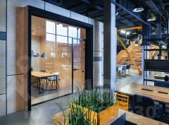 Аренда сервисного офиса в Workki на Калужской. Собственный этаж с мебелью, ярким дизайном, вторым уровнем для кабинетов руководства и двумя террасами.
