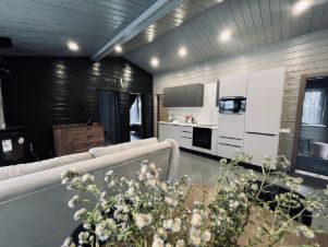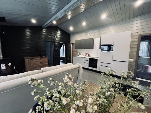 Сдаётся новый дом в стиле barnhouse в деревне Шустино Дмитровского городского округа, всего 800 м от горнолыжного курорта Сорочаны. Дом 2024 года постройки, каркасный с утеплением 250 мм, с панорамными окнами и качественной отделкой под ключ. Полностью меблирован и укомплектован техникой — заезд без дополнительных вложений. Планировка: 2 изолированные спальни, просторная кухня-гостиная с камином, большая ванная комната 8 м², тёплый тамбур со встроенным шкафом и выходом на участок, терраса 24 м². Формат удобен и для постоянного проживания, и для загородного отдыха. Кухня: встроенный холодильник, посудомоечная машина, варочная панель, духовой шкаф, столешница из искусственного камня. Санузел: инсталляция, душевая кабина B&W, бойлер для горячей воды, тёплые полы в ванной и тамбуре. Вода — своя скважина, все инженерные системы в рабочем состоянии. Участок 10,5 соток, земли населённых пунктов. Участок огорожен по периметру, откатные ворота 4 м, асфальт до участка, отмостка по периметру дома, парковка на 3 автомобиля и дорожка к бане. Асфальтовая дорога до участка, на территории отдельная баня в рабочем состоянии. Электричество 15 кВт, деревенский тариф — низкие эксплуатационные расходы. Удобный выезд: около 45 км от МКАД по Дмитровскому шоссе, рядом Дмитров и Яхрома с развитой инфраструктурой. В пешей/близкой доступности горнолыжный комплекс Сорочаны, летом — пляж, бассейн, зоны отдыха, рядом магазины Пятёрочка и ВкусВилл. Арендовать коттедж в Подмосковье в 45 км от мкад в Московской области.