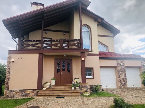 Внешняя отделка выполнена из дорогостоящих, качественных материалов: натуральный камень (известняк), медь, клинкерный кирпич ручной формовки, клинкерная черепица BRAAS, художественная ковка, дубовые окна, гранитный цоколь