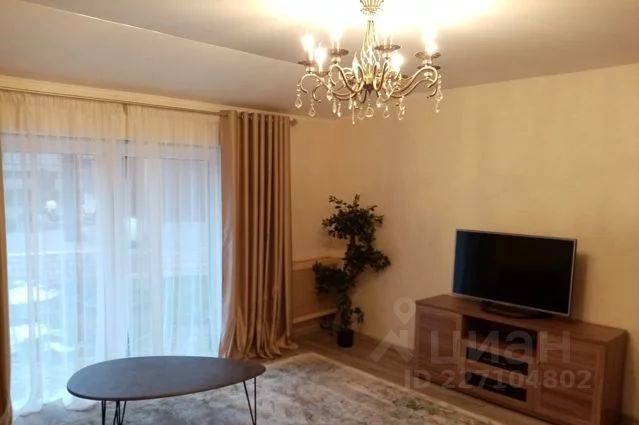 В кухне-гостиной размещен большой LED-телевизор LG с функцией Smart-TV диагонали 55 дюймов, большой комод, и несколько шкафов. Один из которых заменяет гардеробную. Вмещает очень много вещей. Установлен кондиционер.
