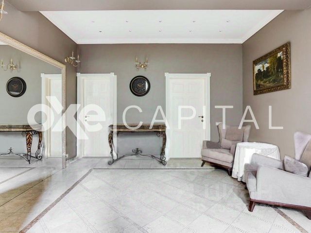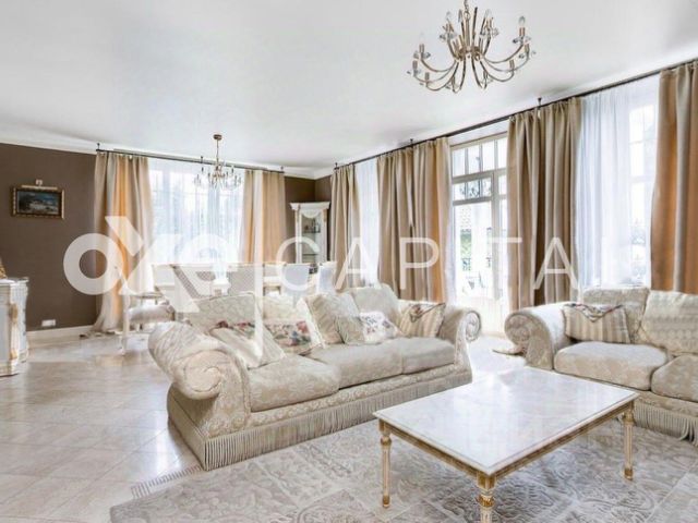 В доме выполнена превосходная отделка с применением высококачественных материалов. Мраморные полы подчеркивают роскошное убранство. Интерьер выдержан в мягкой, пастельной цветовой гамме и укомплектован изысканной итальянской мебелью из ценных пород. Дом отапливается шведской системой отопления "Термотех" (теплый пол). Оптимальный микроклимат в доме поддерживают встроенная система вентиляции и кондиционирования.