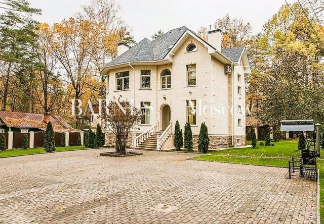 На участке выполнен ландшафтный дизайн с зонированием: зеленые лужайки, открытая веранда с барбекю, фруктовый сад, аккуратный огородик, теплица, погреб, домик персонала, парковка на 4-6 автомобилей. Зеленая изгородь из хвойных деревьев укрывает усадьбу от посторонних глаз.