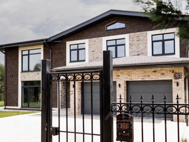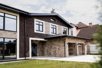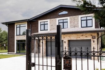 В доме 2 этажа, пять спален со своими гардеробными и ванными комнатами и санузлами, 3 гостевых спальни, бассейн, сауна, можно обустроить хамам, два гаража, навес для автомобилей: