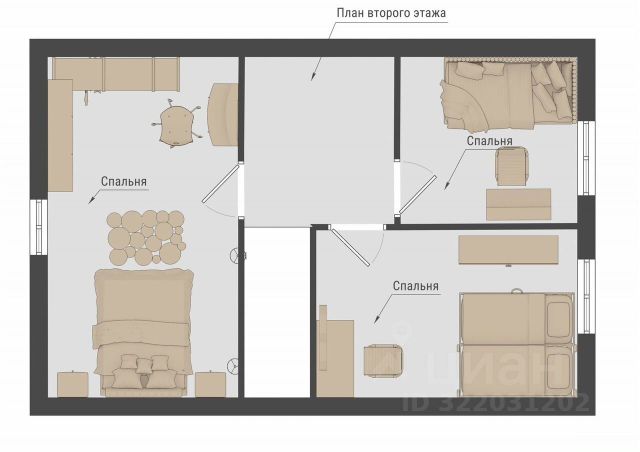 На третьем этаже, большое свободное пространство с любым предназначением, (спальня, детская, гостевая, место для релакса, кабинет), встроенный шкаф.