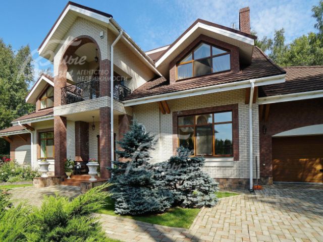 Код объекта в БД Агентства: 323-011. Росинтер к/п. Просторный дом в классическом английском стиле на зеленом участке 20 соток в обжитом охраняемом поселке. В доме много спален и санузлов, большой каминный зал со вторым светом, бильярдная в теплой террасе, гараж. Выполнена дорогая дизайнерская отделка с использованием натуральных материалов, антикварная мебель и гарнитуры из массива дерева. На участке перед домом также есть крытая парковочная площадка .