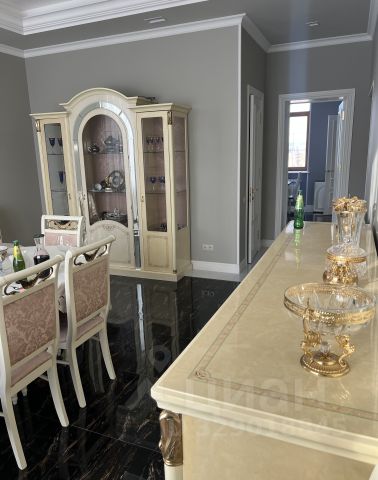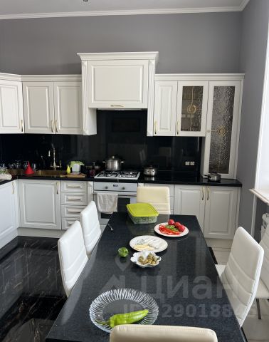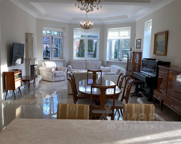 Мебель, оборудование: кухонный гарнитур в классическом стиле со шпонированными фасадами и столешницей из камня (Италия). Встроенная техника: газовая варочная панель, духовой шкаф, микроволновая печь Bosch, посудомоечная машина, двухкамерный холодильник. Телевизоры Philips, Bosch, стиральные машины Samsung и Bosch, сушильная машина Siemens. В гостиной антикварная мебель, в зоне столовой обеденная группа из массива на 8 персон. В спальнях дорогие гарнитуры из массива дерева с резными элементами (двуспальные кровати, прикроватные тумбы, комоды, туалетные столики, банкетки, вместительные шкафные группы). В кабинете кожаный диван, солидный рабочий стол и шкаф для документов из массива. В гардеробных функциональная система хранения. Во всех помещениях дорогие карнизы, шторы с подхватами и ламбрекенами, изящные тюли, оригинальные люстры и светильники. Второй свет украшают хрустальные люстры с имитацией свечей, на стенах разнообразные картины в общей стилистике дома..