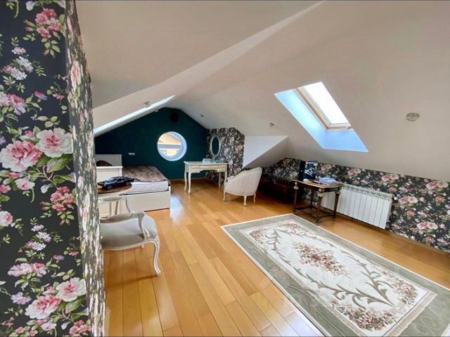 Код объекта в БД Агентства: 239-009. Теплый добротный дом из бревна в аренду в уникальном историческом месте в окружении лесного массива. В доме 4 спальни, 2 гостиные на разных этажах, кухня с настоящей русской печью. Симпатичный ухоженный участок с ландшафтом и множеством взрослых хвойных и лиственных деревьев. Есть летняя деревянная беседка. Деревянное ограждение по периметру участка с автоматическими воротами. Очень красивая природа - рядом водоохранная зона реки Десна, лес. Удобный подъезд-выезд на Киевское шоссе. Развитая инфраструктура поселка Первомайское - 3 минуты на авто. В поселке расположен Музей VI съезда Коммунистической партии Китая, он же - филиал Китайского культурного центра. Открыт в главном доме усадьбы XVIII века, принадлежавшей Мусиным-Пушкиным в Старо-Никольском. Материал стен: бревно. Облицовка стен: стены обшиты окрашенной деревянной доской (сайдингом), цоколь облицован натуральным камнем. Стадия готовности: меблирован. Описание внутренней отделки: стиль ретро (аутентичный русский частный дом). Выполнена отделка из натуральных материалов с элементами стиля прованс. Стены и потолок в основном отделаны вагонкой или блокхаусом. В кухне-столовой стены, потолок и пол - деревянная окрашенная доска. Гостиная: пол и потолок - окрашенная деревянная доска, стены комбинированные: дерево + обои. Санузлы полностью отделаны испанской плиткой, полы - с подогревом. Фартук кухни- стильная испанская плитка маленького формата с декором. В кухне-столовой есть настоящая русская функционирующая печь. Деревянная лестница белого цвета (ступени - естественного цвета, покрыты лаком) с резными балясинами.. Инженерное обеспечение: в доме установлены 2-х контурный газовый котел Saunier Duval (Франция) и многоступенчатая система очистки воды (3 столба). Интернет оптоволокно, wi-fi, эфирная ТВ-антенна. Есть спутниковая тарелка, подключат по желанию арендатора.. Мебель, оборудование: дом полностью укомплектован хорошей мебелью. Кухня молочного цвета фабрики Мария в стиле прованс с техникой: газовая плита, духовой шкаф Kaiser, холодильник двустворчатый LG, кофемашина, вытяжка, посудомоечная машина, СВЧ. Стиральная машина, ТВ. В гостиной - диван, обеденный стол со стульями, шкафы, этажерки. В спальнях: кровати или диваны, рабочие зоны, шкафы. На 2 этаже гостиная зона с обеденным столом, диван, кресла, шкафчики. в доме много различных стильных аксессуаров: занавески на кухне, картины на стенах, декоративные предметы интерьера. Во всех комнатах люстры. В гостиной торшер. Везде есть шторы и тюль.. Тип участка: лесной с ландшафтом. Благоустройство участка: на участке растет множество взрослых хвойных и лиственных деревьев, кустарники, клумбы. Уличное освещение, зоны для отдыха. Дорожки, деревянные навесы.. Дополнительные строения: - дом собственников; - беседка; - хозяйственная постройка; - детская площадка.. Коммуникации: газ - есть (магистральный), э/э - есть (15 кВт), водопровод - индивид. скважина, канализация -