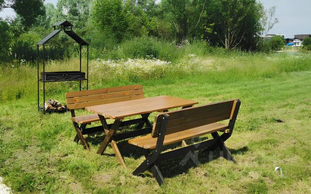 Костровая зона - деревянные кресла, столики, костровая чаша красивая, мангал.